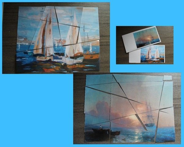 voici deux jolis puzzles "fait maison" grace à deux belles peintures trouvées sur le net. je les ai imprimée et plastifiée avant de les découper en morceaux.
